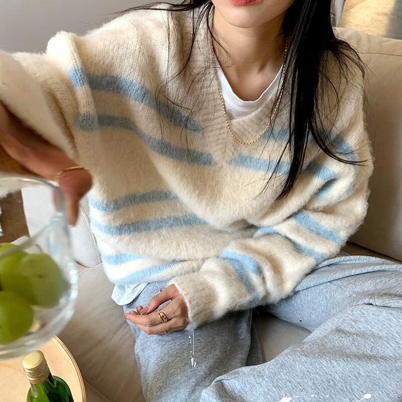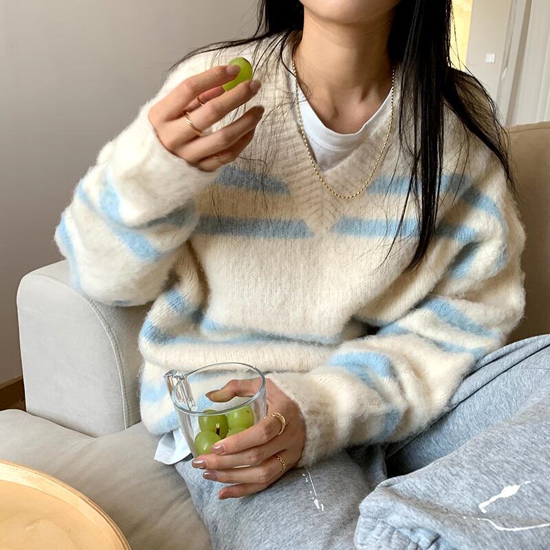 ウィンタースタイルルーズVネックセーター プルオーバー トップス 冬物 kumikum35103915611