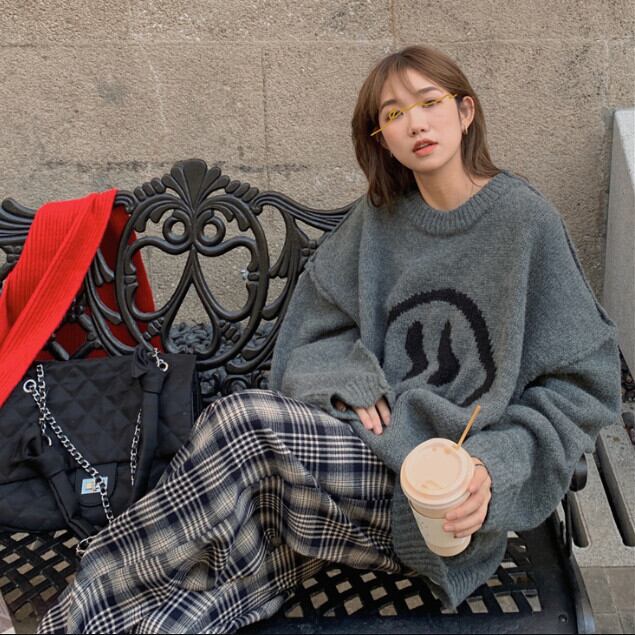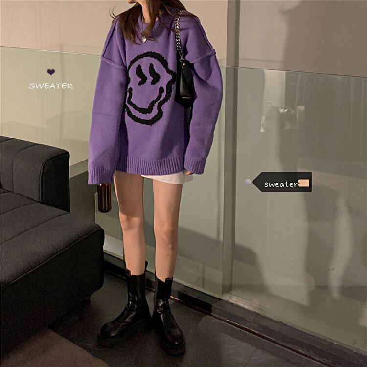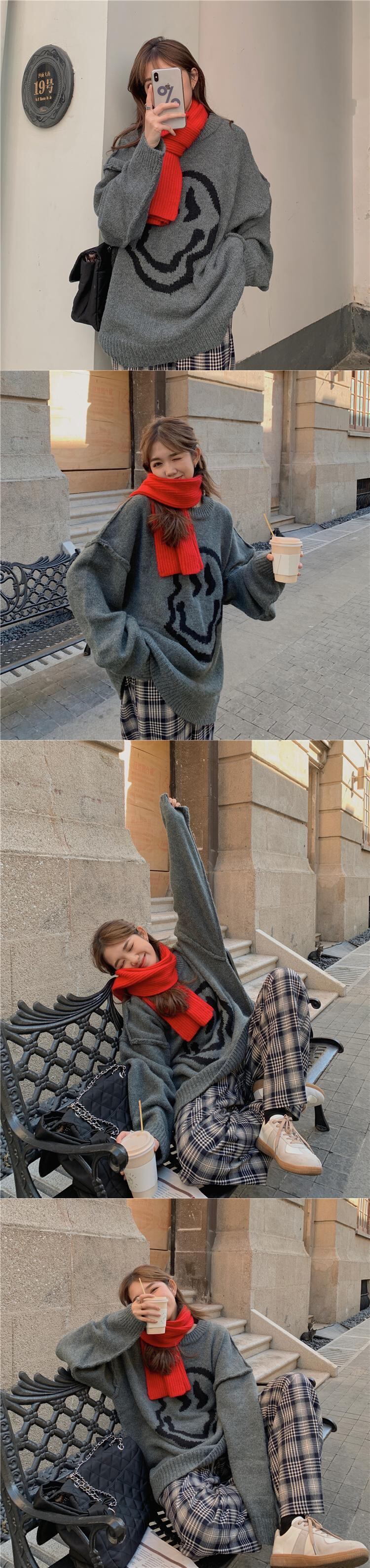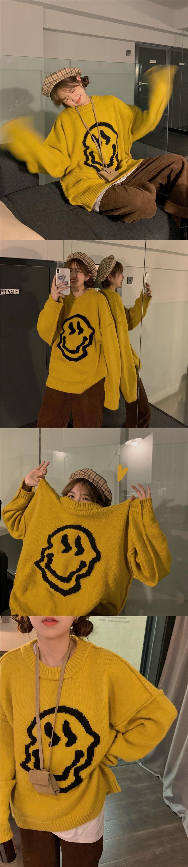 ジャカードニットセーター ラウンドネックブラウス レディースウィンタールーズスタイルプルオーバー ロング 冬物 Oネック kumikum43369161061