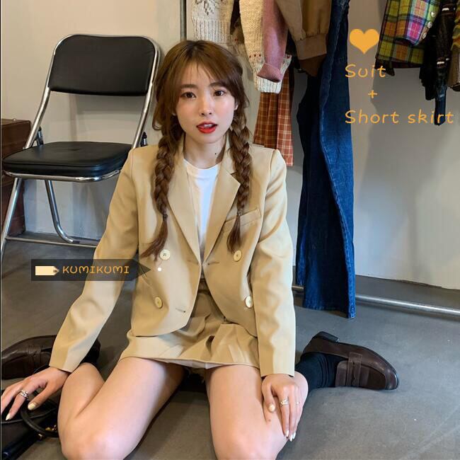 スプリングショートジャケット プリーツスカート スタイル 春物 kumikum84530060361