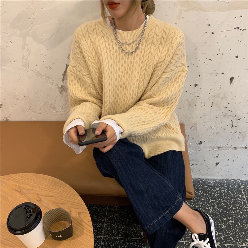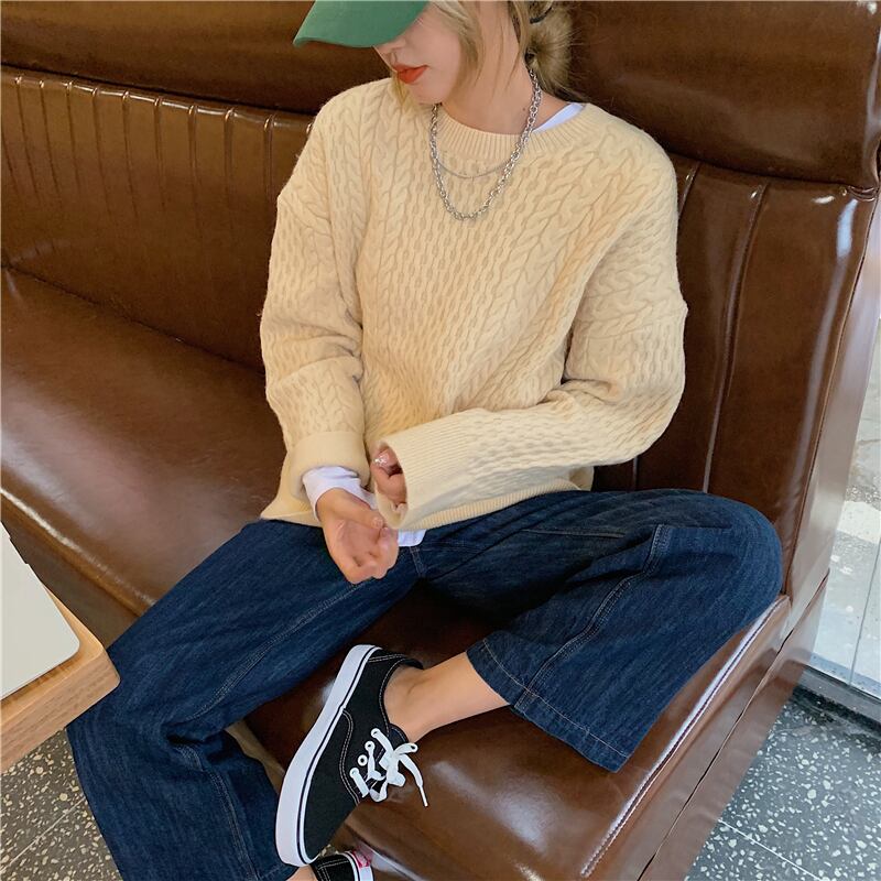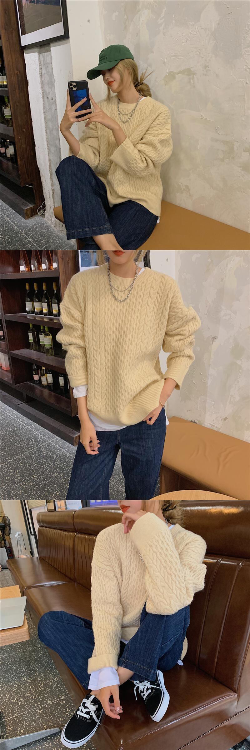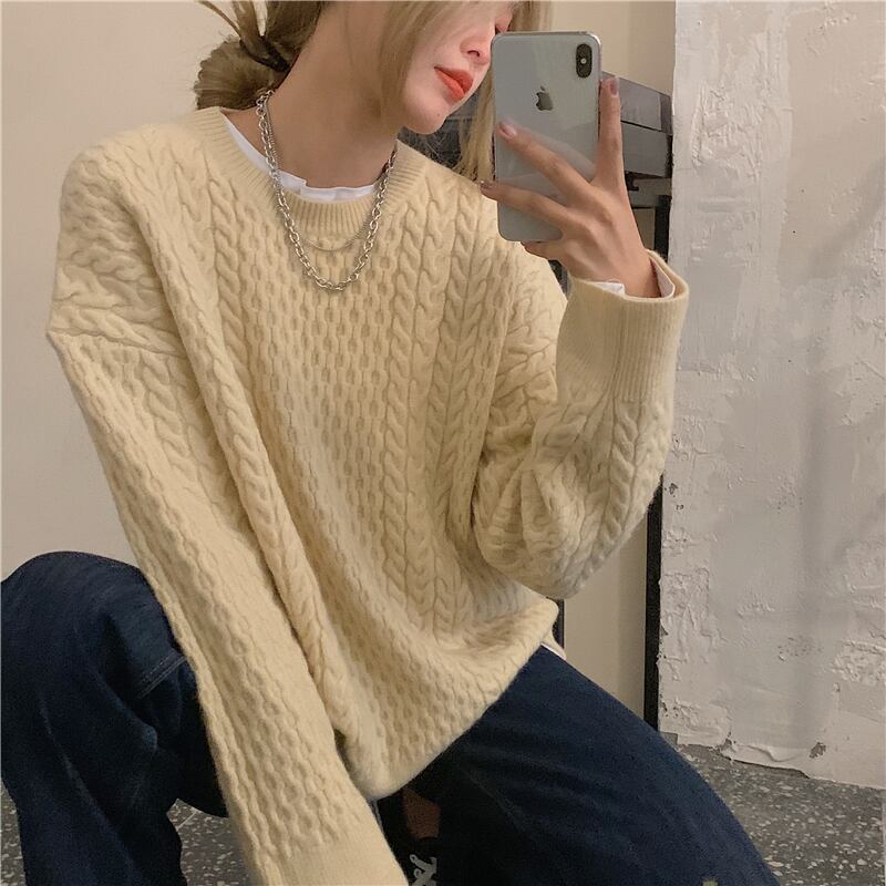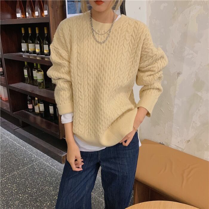 スタンダードスタイルプルオーバー セーター オータムルーズニットラウンドネックトップス ロング レトロ 秋物 Oネック kumikum53459395291