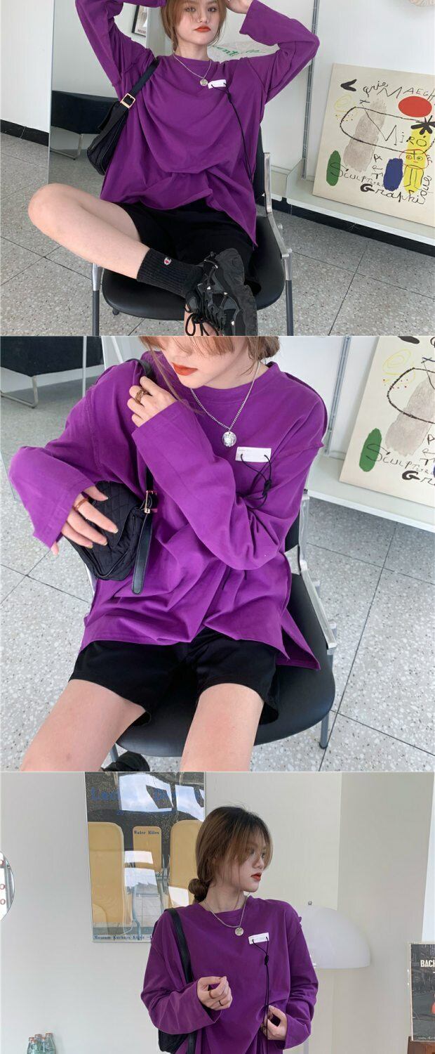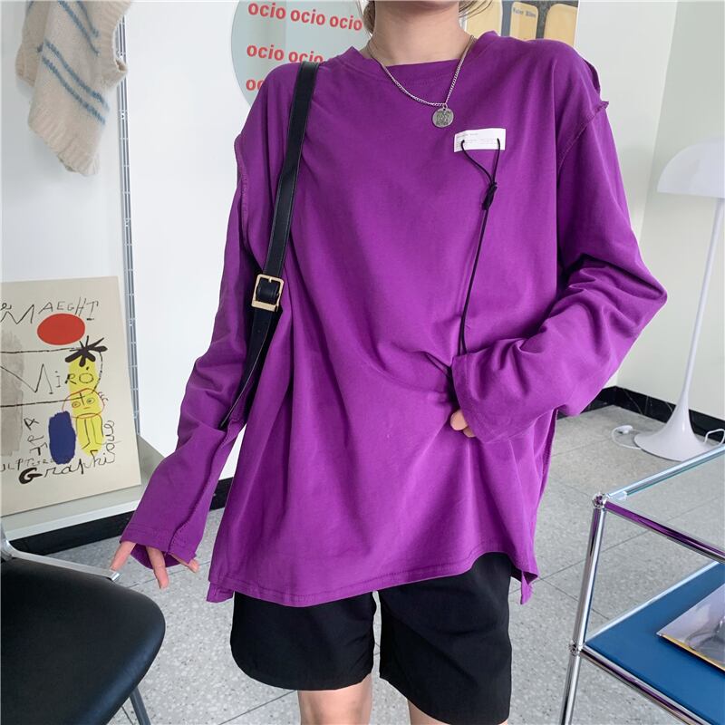 ラウンドネックシャツ ブラウス レディースウィンタールーズロングTシャツ 長袖 冬物 Oネック kumikum34038171509