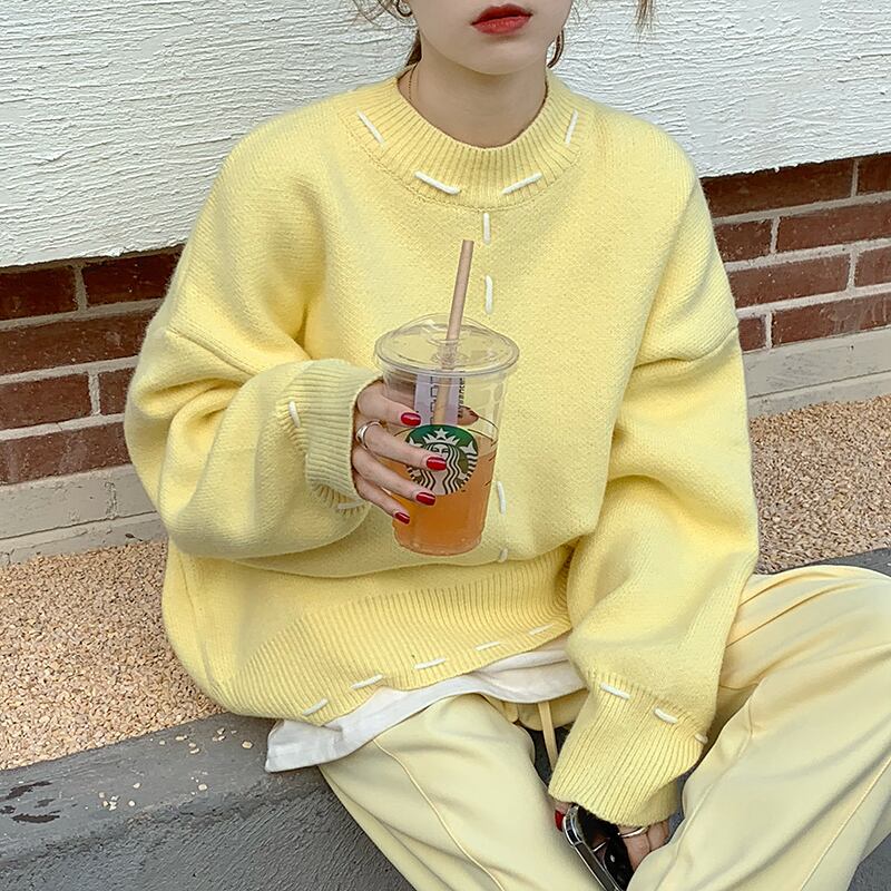 ラウンドネックプルオーバー セーター スプリングカジュアルパンツ 春物 Oネック kumikum10874689008