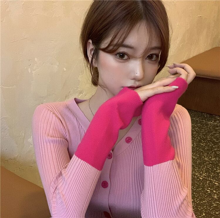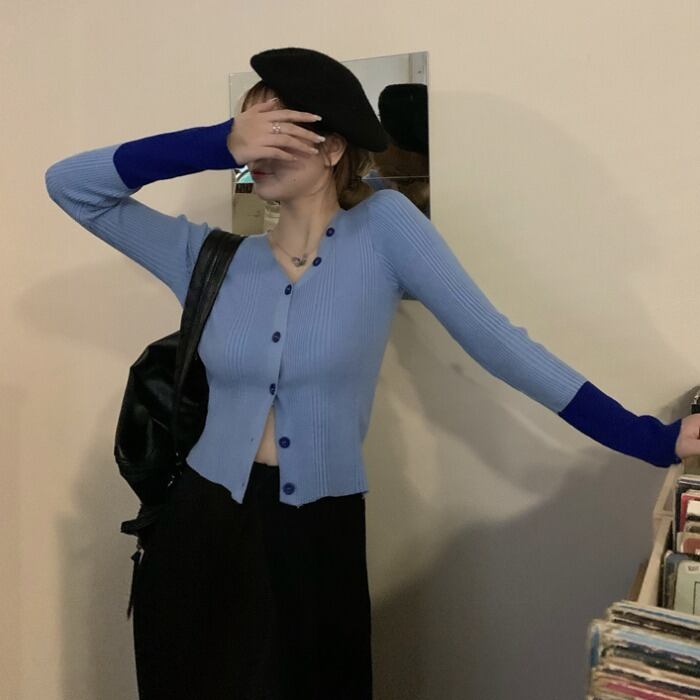 Vネック薄手ニットセーター スプリングスタイルスリムショートカーディガントップス ロング 春物 kumikum8484677941
