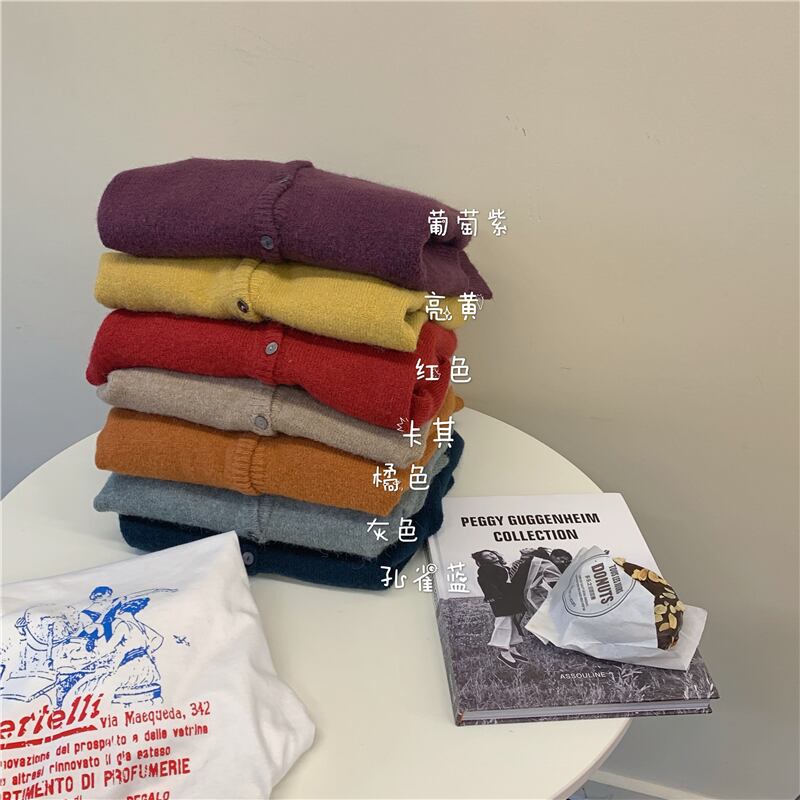 オータムスタンダードセーター トップス レディースルーズソリッド カラーカーディガンジャケット ロング レトロ 秋物 ソリッドカラー kumikum76477549796