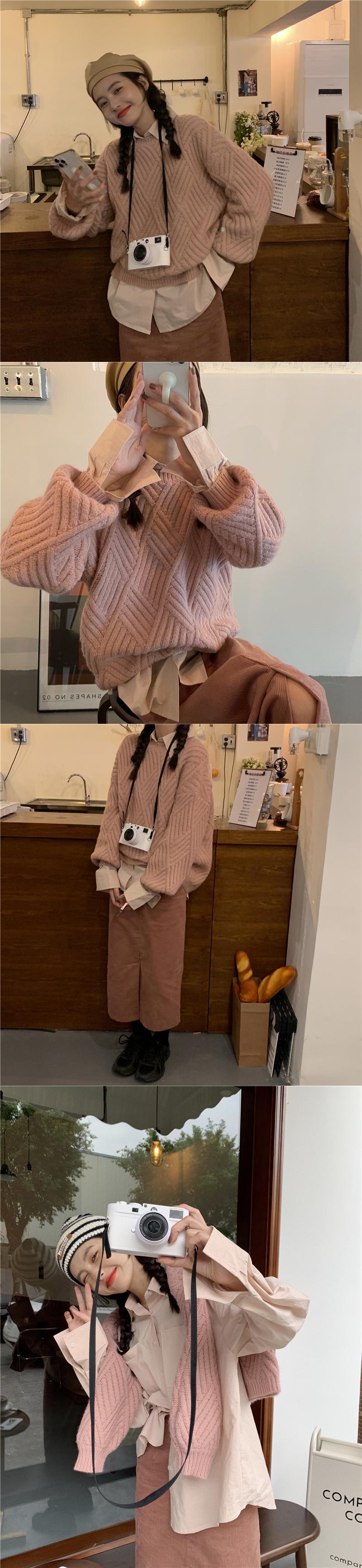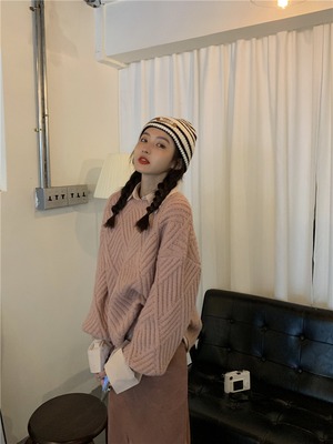 ラウンドネックセーター ウィンタールーズトップス ロング ピンク 冬物 Oネック kumikum53096694812