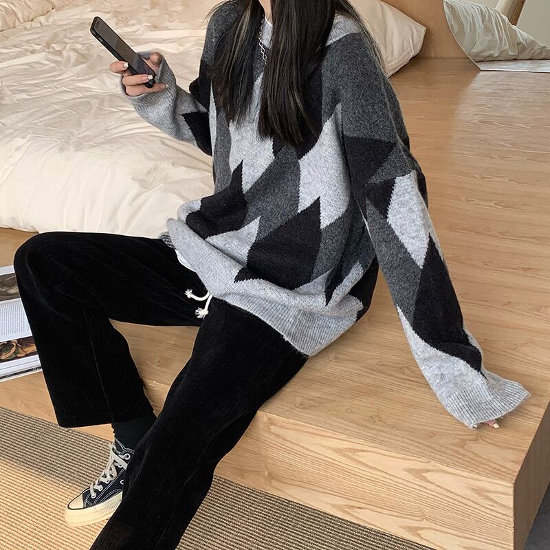 ラウンドネックニットプルオーバー セーター ウィンタールーズカジュアルパンツ 冬物 Oネック kumikum78504893431