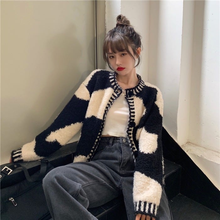 ウィンターカラーニットセーター カーディガンジャケット ハイウェストウェストルーズ 冬物 kumikum55979372135