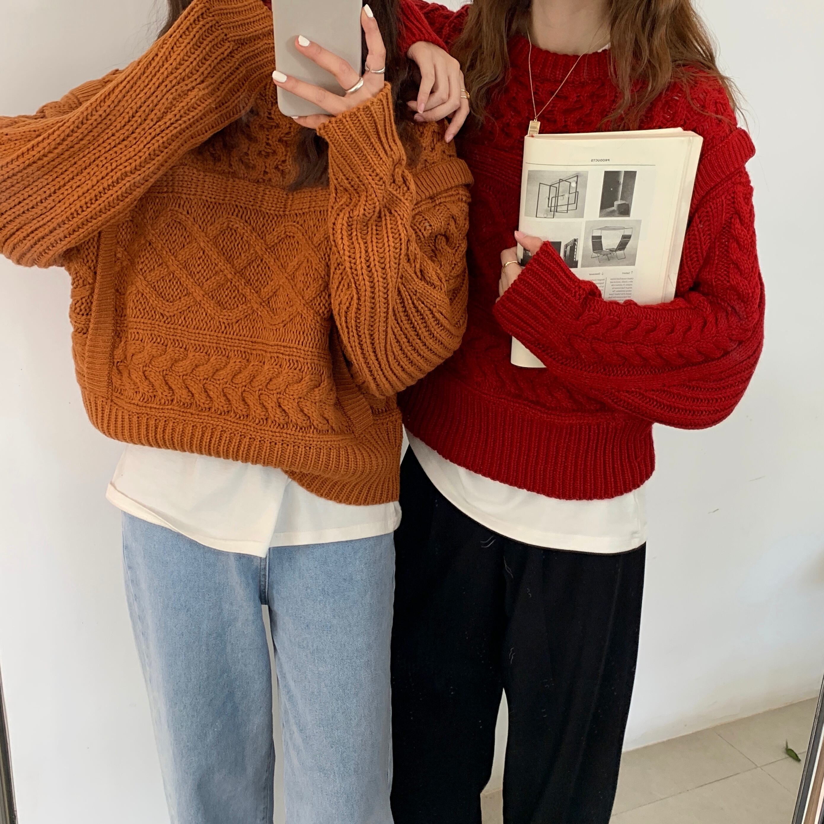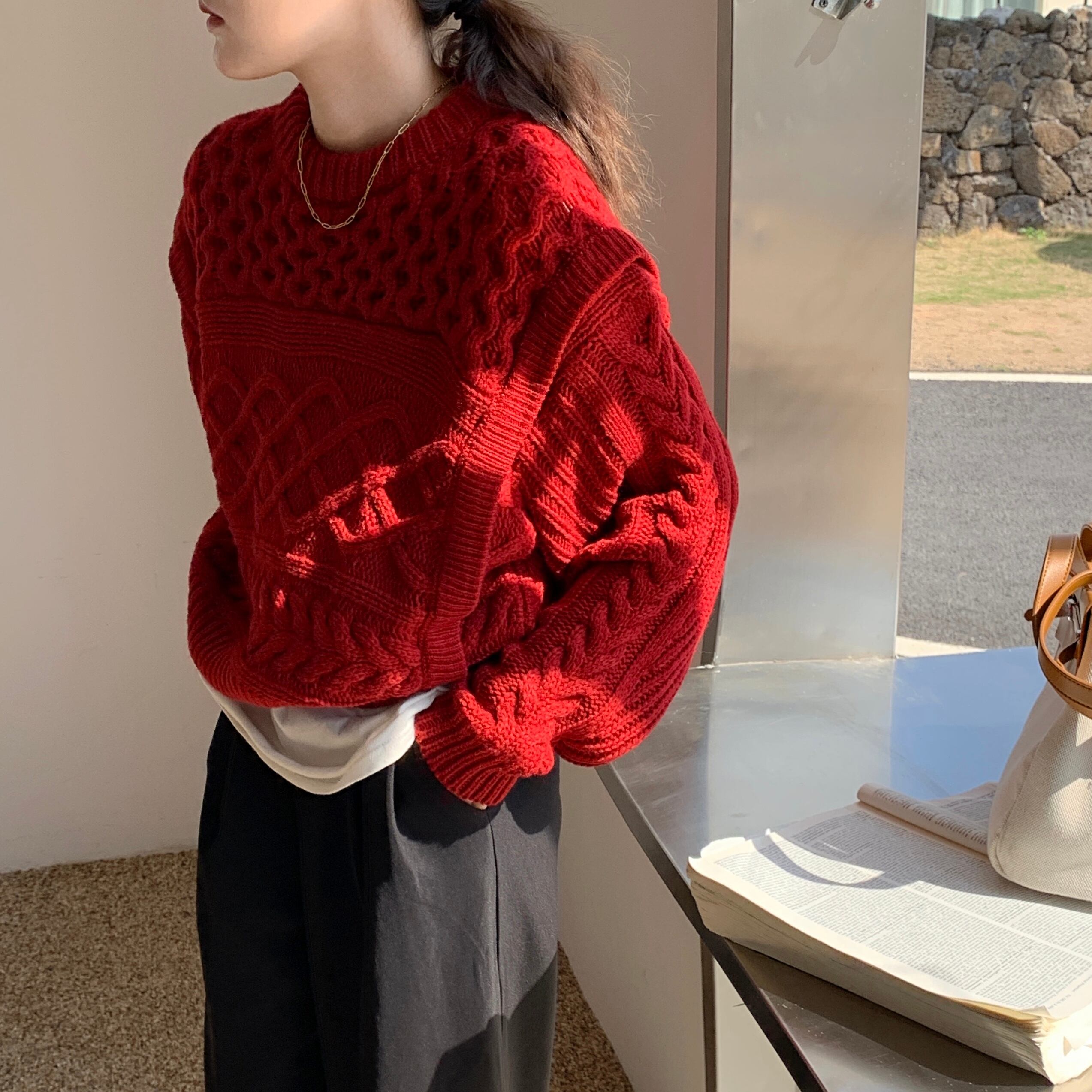 ヴィンテージラウンドネックブラウス ニットセーター レディースウィンタールーズプルオーバー ロング 冬物 Oネック ビンテージ kumikum50912049065
