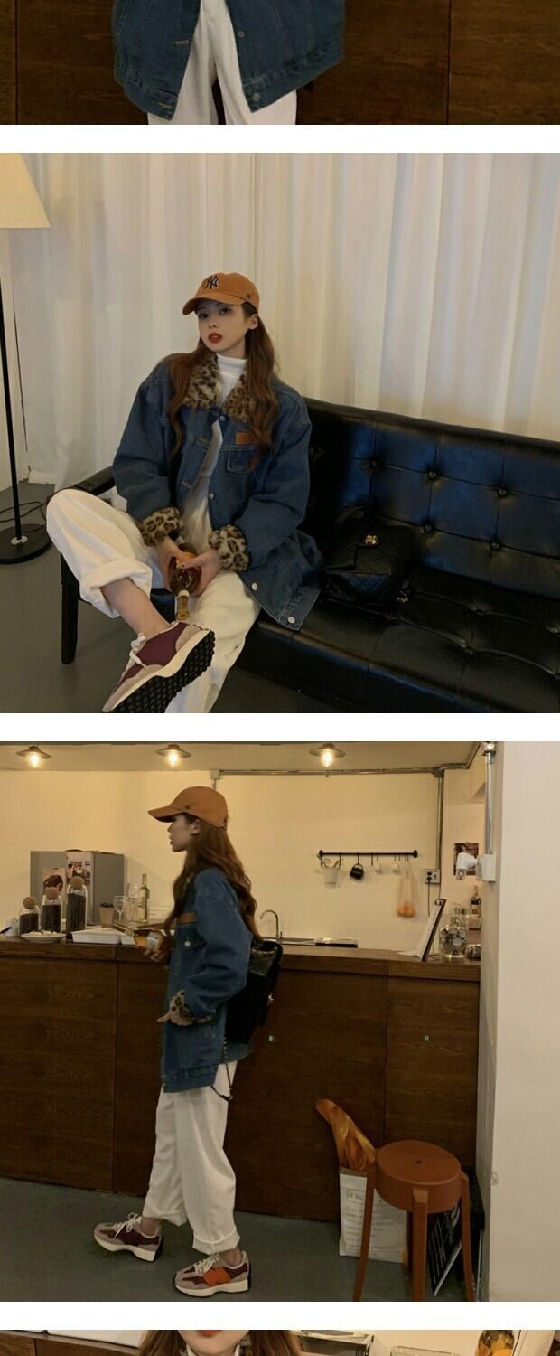 ウィンタースタンダードルーズベルベットレオパードショートジャケット レトロ 冬物 ステッチ kumikum7298287373