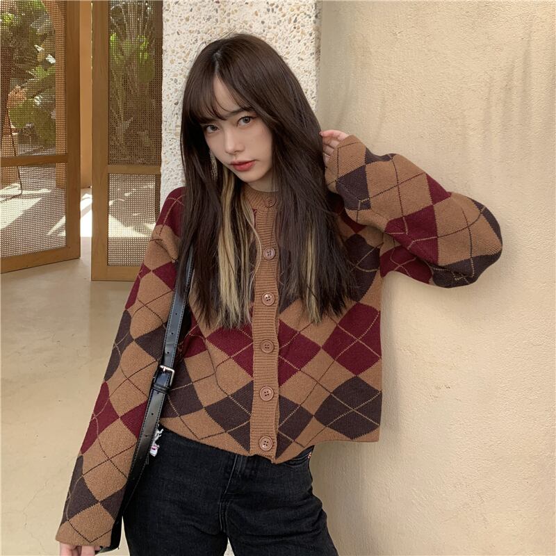 スタンダードカラーラウンドネックセーター カーディガンジャケット スプリングルーズトップス ロング レトロ 春物 Oネック kumikum54594249361
