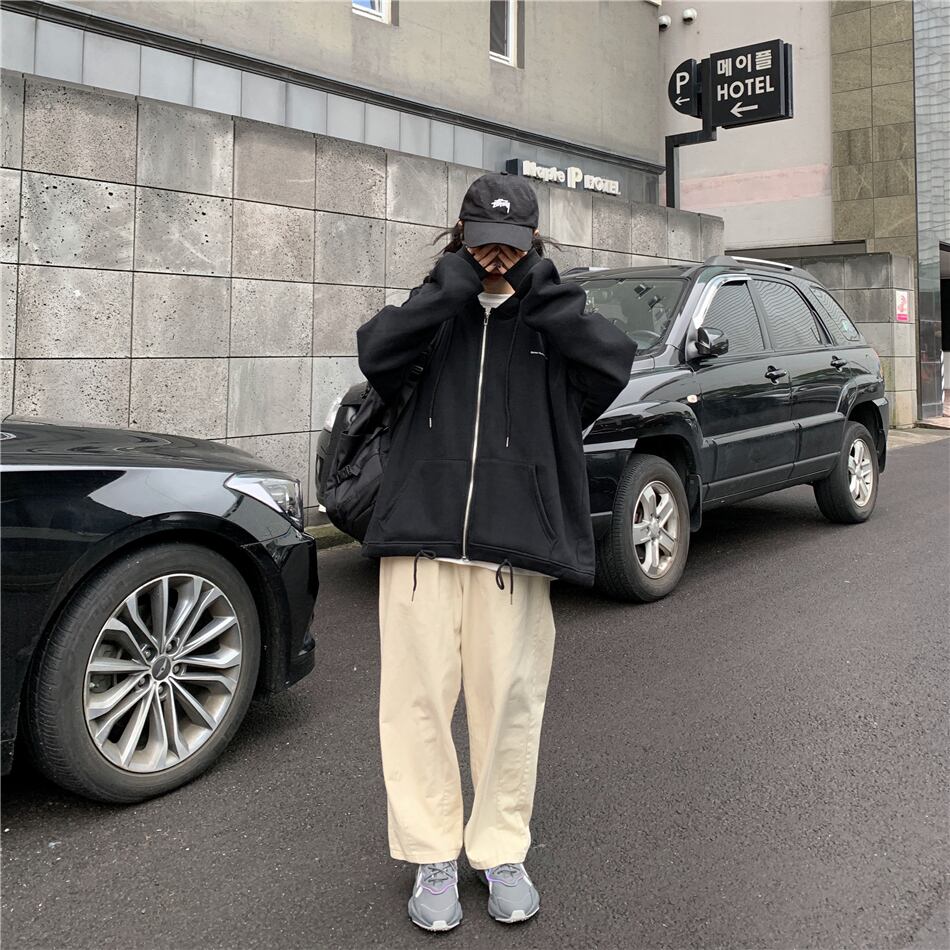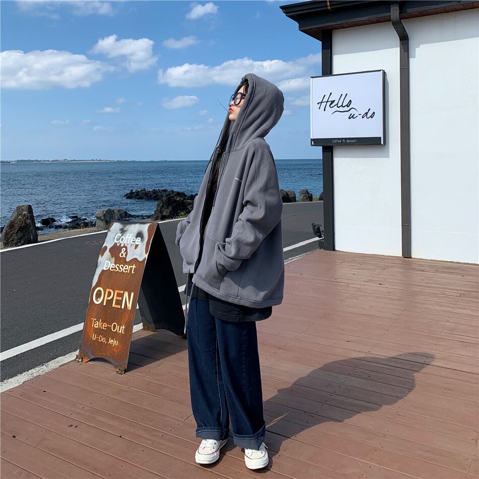 ギャザーフードジッパーセーター カーディガンジャケット ルーズカジュアルトップス ロング オータム 秋物 ウィンター 冬物 kumikum31517157137