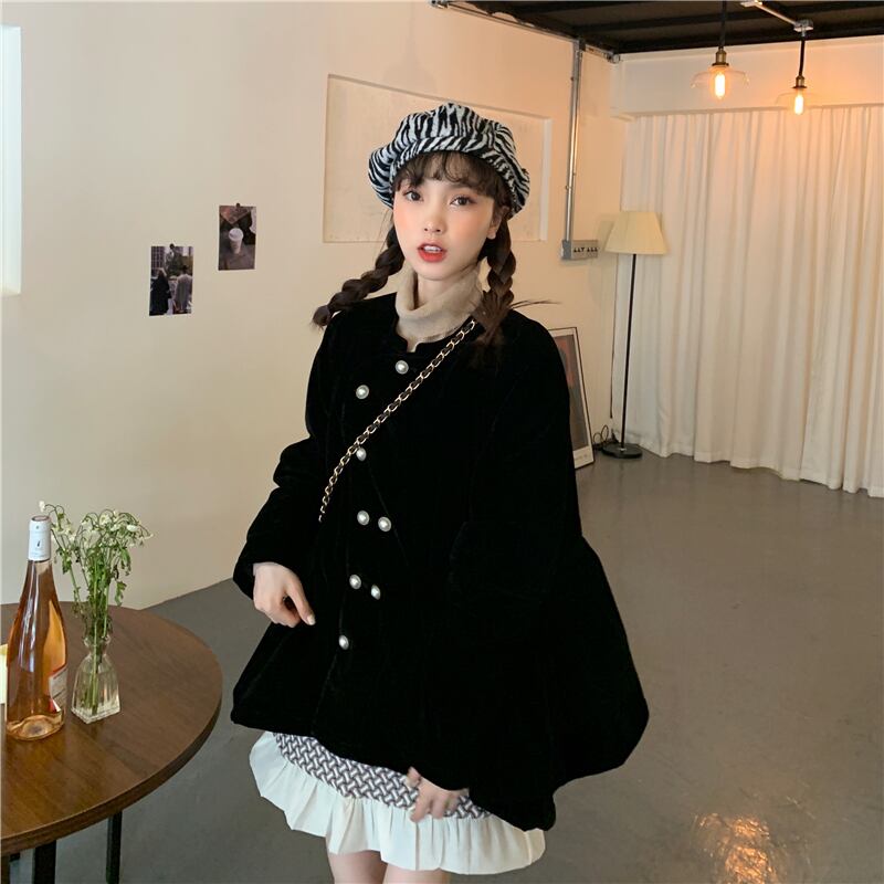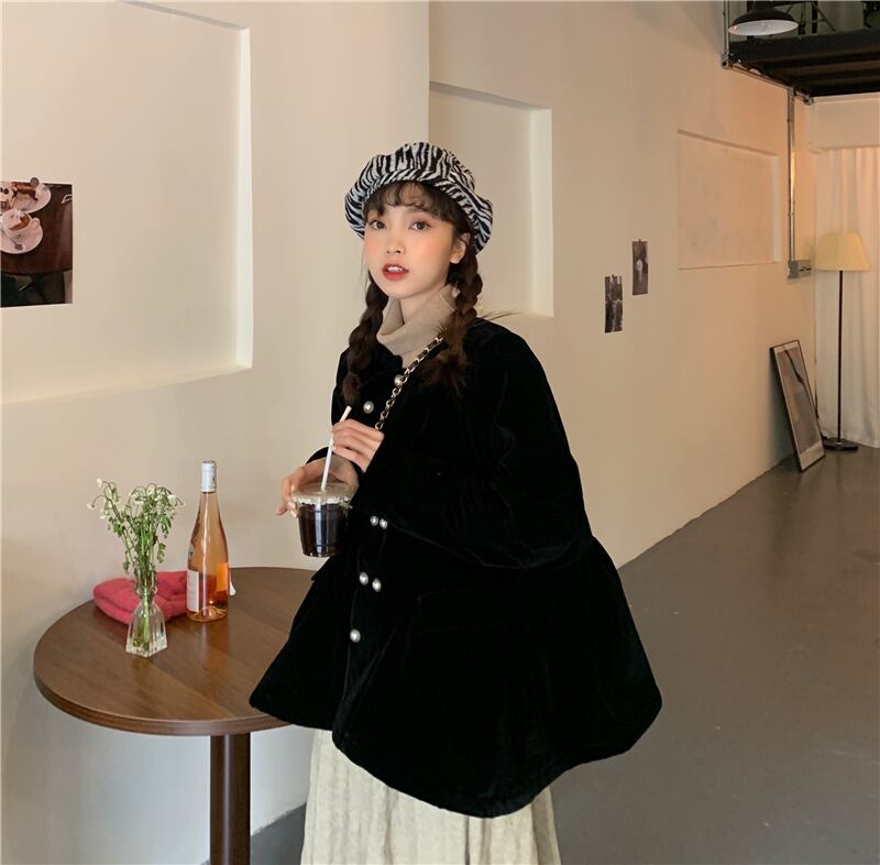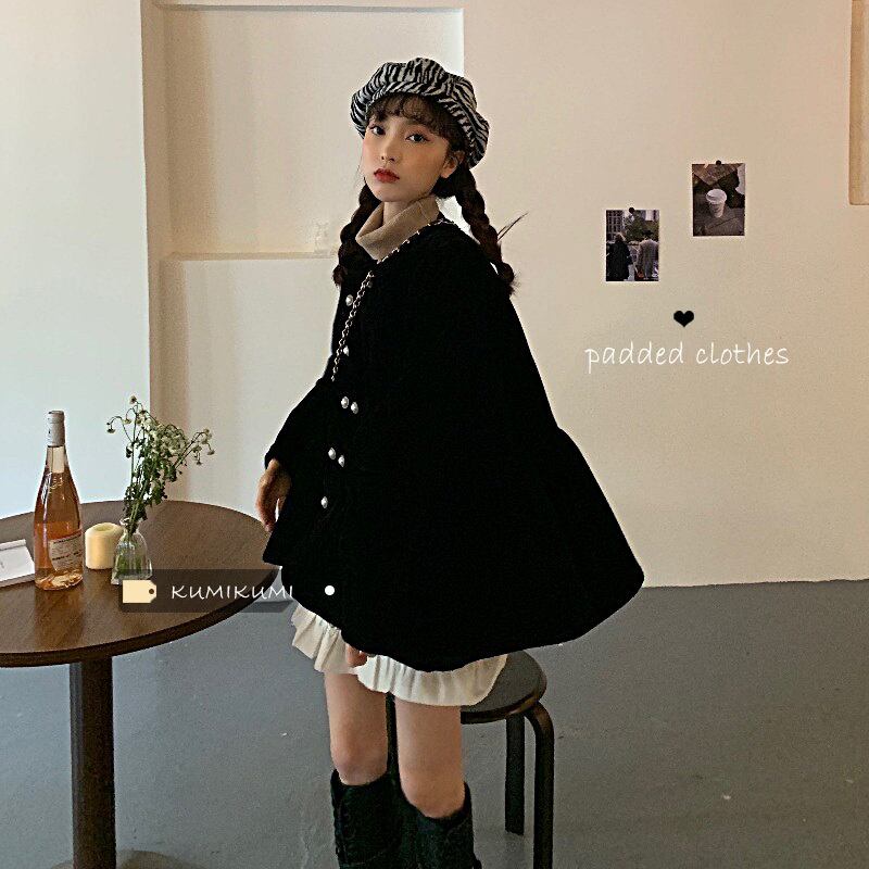 ブラックベルベットFlowerデザイン ジャケット オータムウィンター コットン 秋物 冬物 フラワーデザイン kumikum17158801511