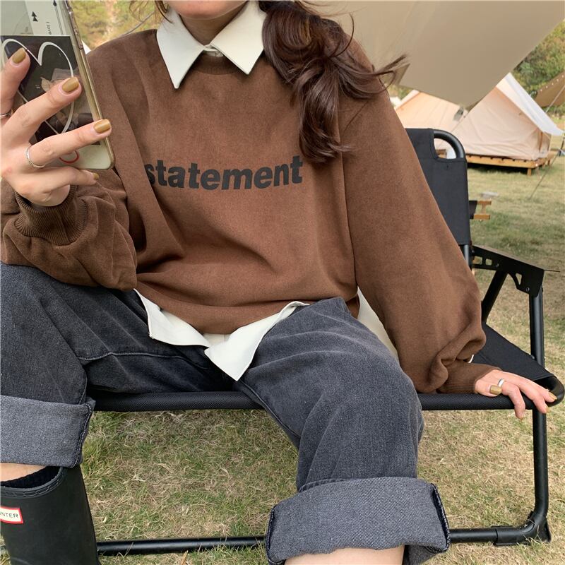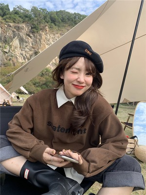 プリントルーズラウンドネックセーター ジャケット レディースオータムウィンターベルベットプルオーバー トップス ロング 秋物 冬物 Oネック kumikum23680564687