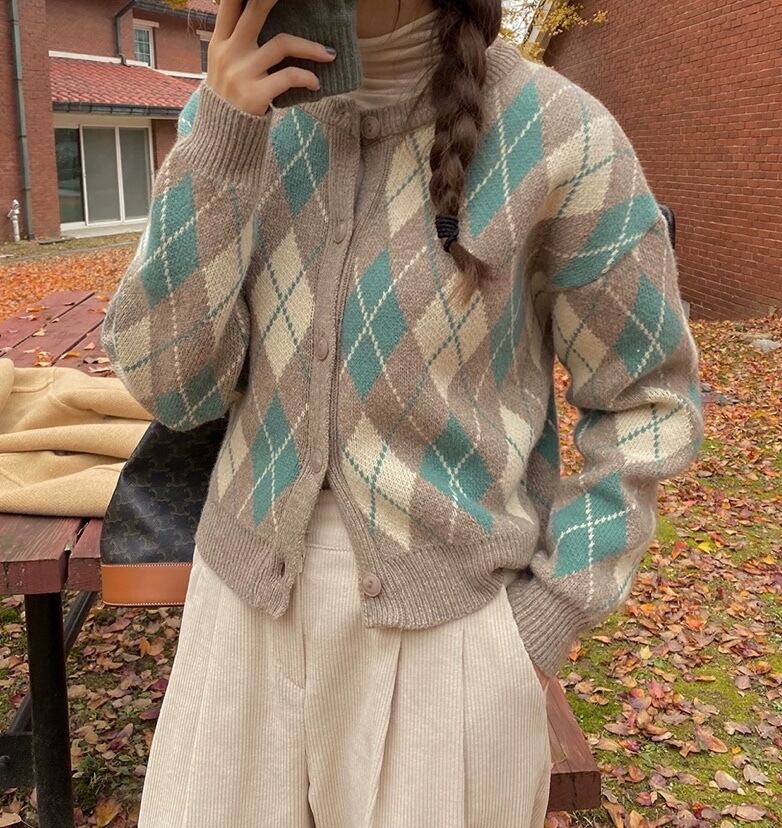 ニットジャケット レディースウィンタースタンダードカラーカーディガンセーター ロング レトロ 冬物 kumikum9389729523