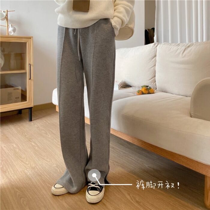 ウィンターベルベットパンツ ハイウェストウェストスリムルーズカジュアルワイドレッグ 冬物 ワイドパンツ kumikum88844493542