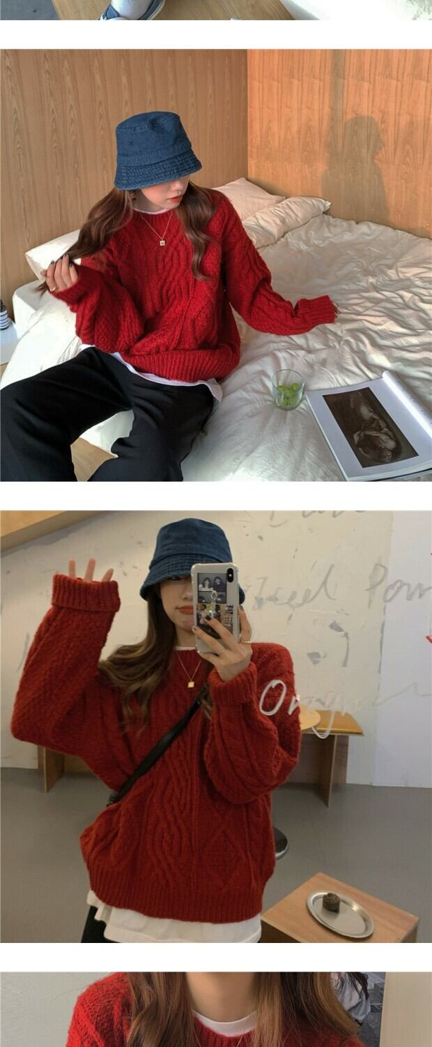 ウィンターラウンドネックセーター ルーズスタイルプルオーバー ロング 冬物 Oネック kumikum74547061104