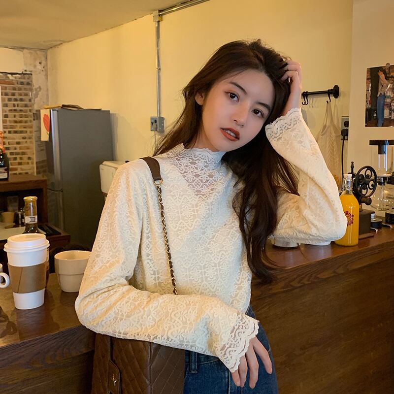 スタイルベルベットカラーレースシャツ トップス レディーススプリングスリム ロング 春物 kumikum98528164806