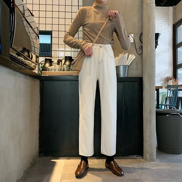 ホワイトジーンズ グリーンルーズスリムパンツ スタイルハイウェストスタンダード レトロ kumikum6420469321