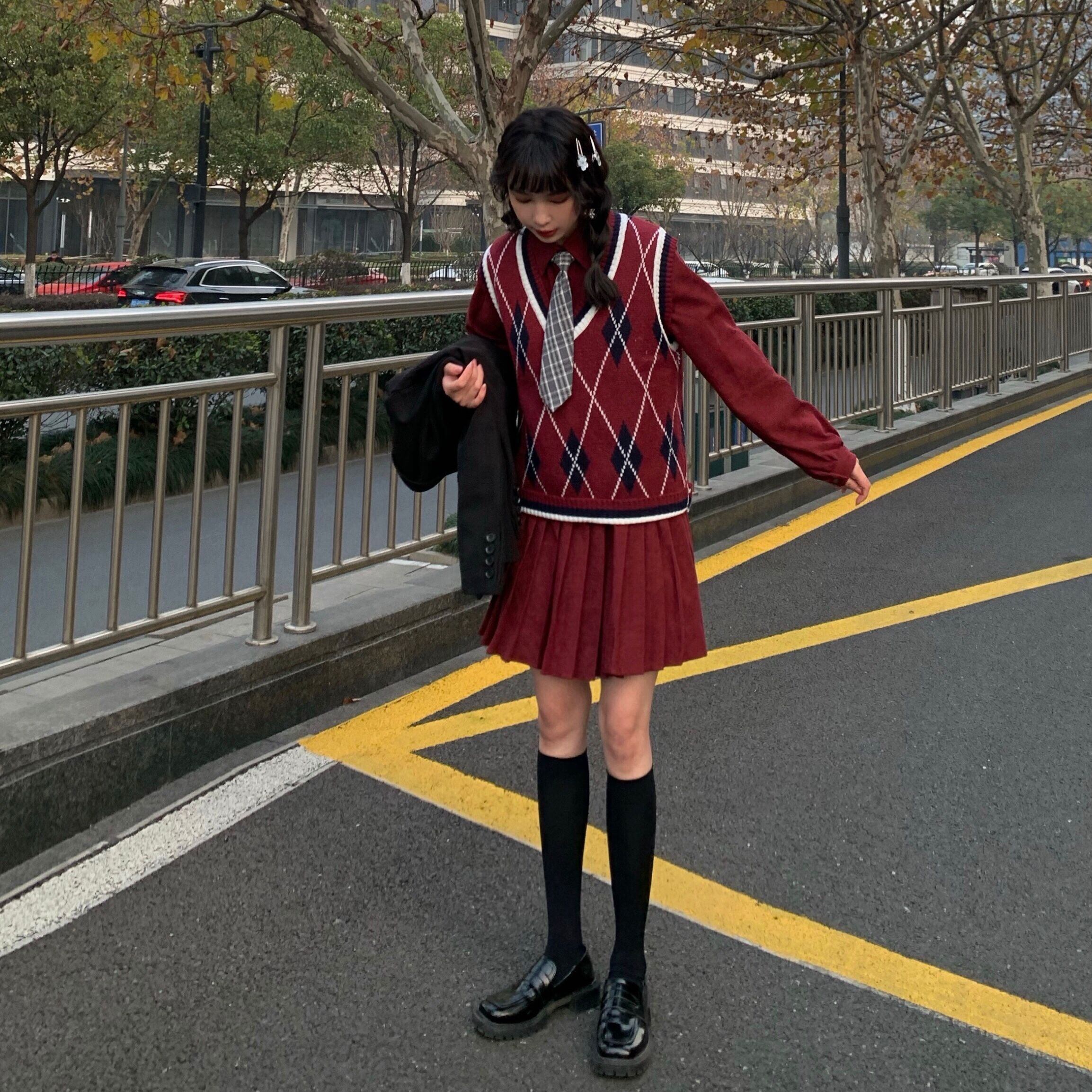 スプリングスカート Vネックニットセーター プリーツドレス 春物 kumikum8275175384