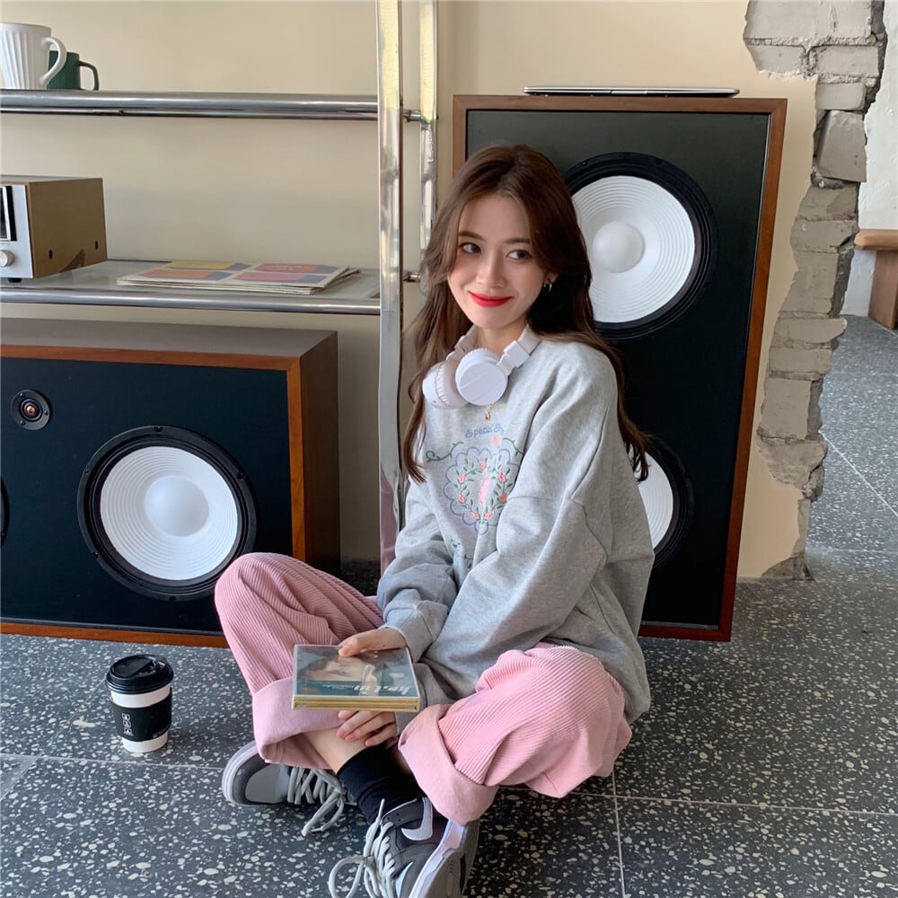 刺繍セーター オータムルーズグレースタイルシャツ ロング 秋物 kumikum96610568545