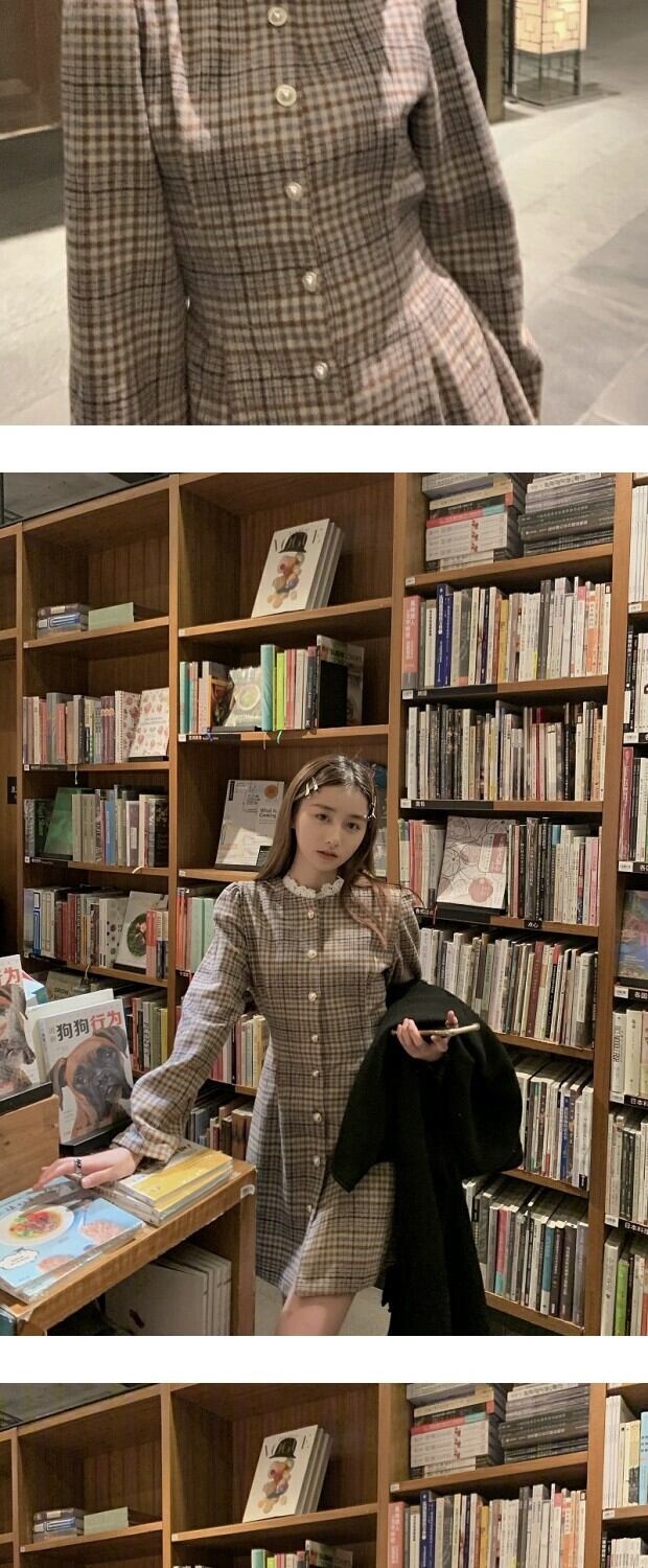 スタンダードレースラウンドネックスカート ウィンター長袖スリーブAラインドレス ロング レトロ 冬物 Oネック kumikum63921865042