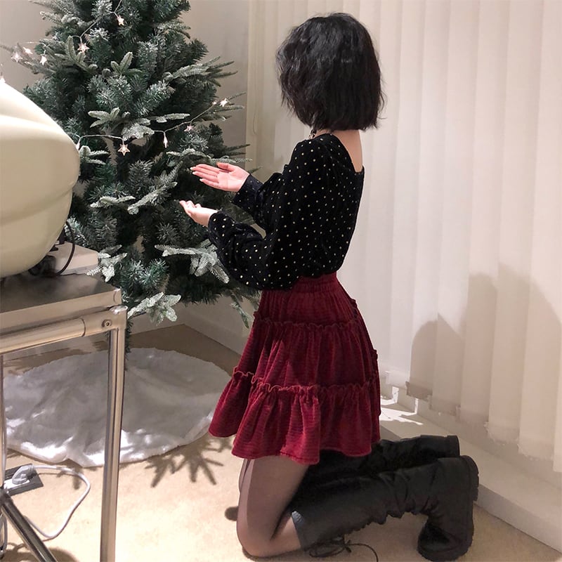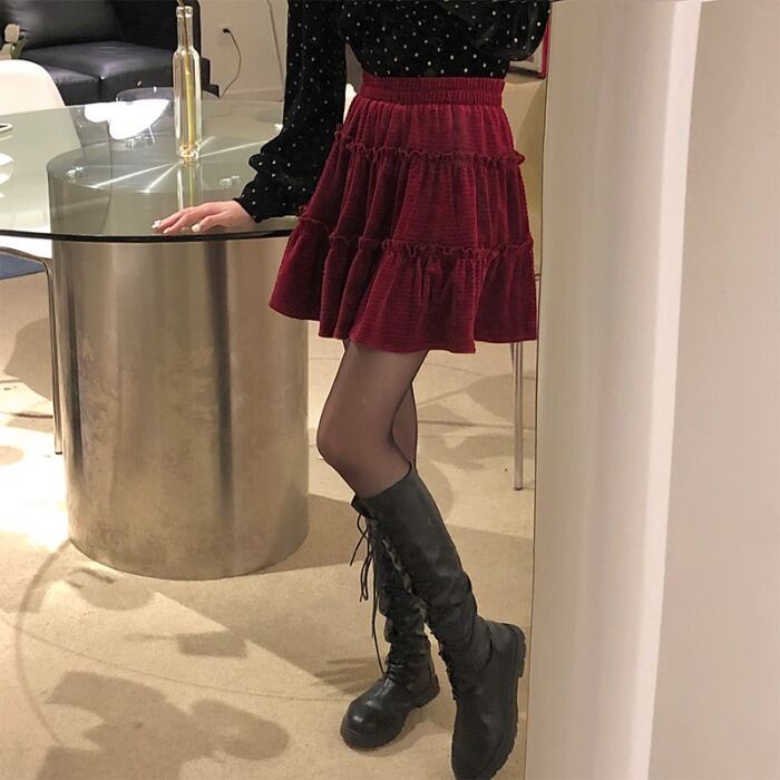 スタイルベルベットハイウェストウェストAラインスカート ウィンター薄手 冬物 kumikum34197665998