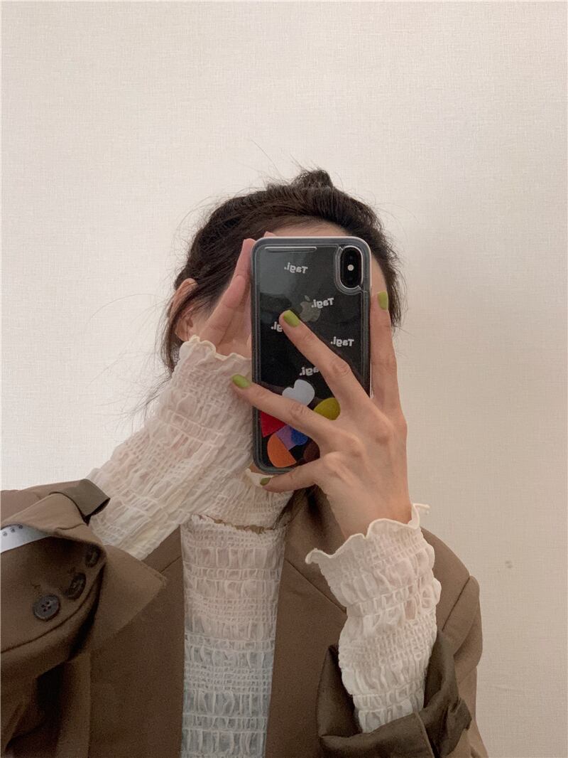 カラー薄手レースシャツ ブラウス スプリングスタイルスリム ロング 春物 kumikum26061798369