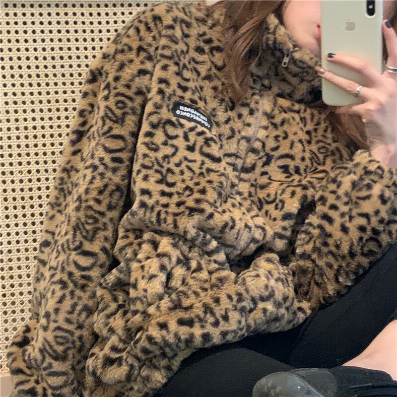 ヴィンテージレオパードプリント柄カラーウールカーディガンジャケット レディースオータムウィンタールーズ ロング 秋物 冬物 ビンテージ kumikum13439886976
