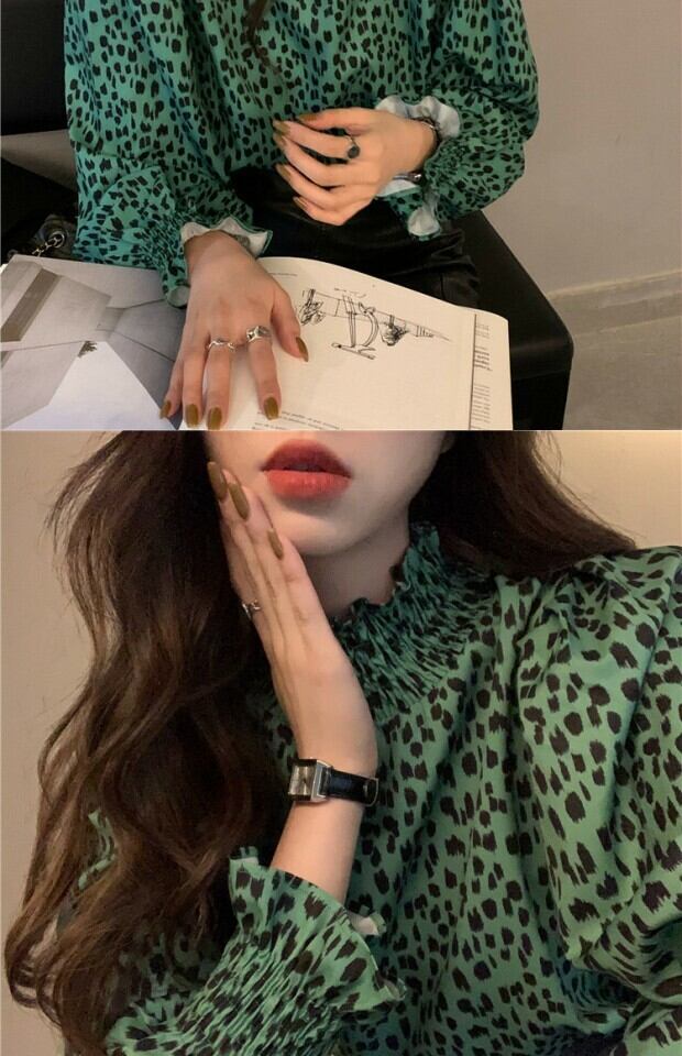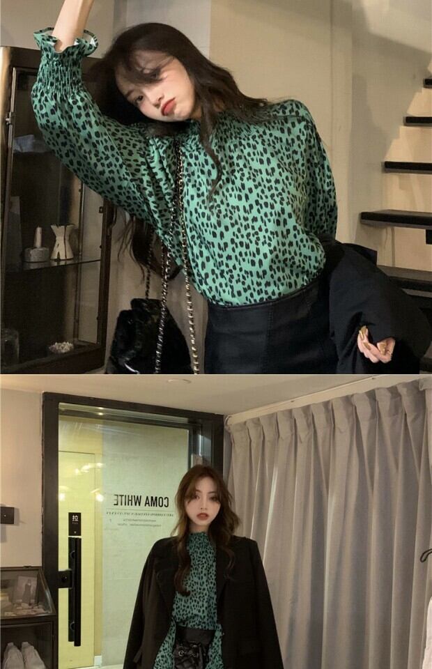 スタンダードスタイルレッドレオパードプリント柄ブラウス スプリングルーズ薄手シャツ ロング レトロ 春物 kumikum86864477405