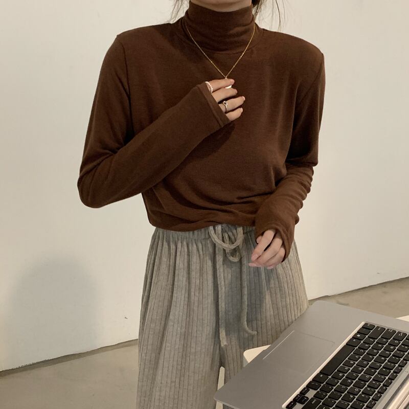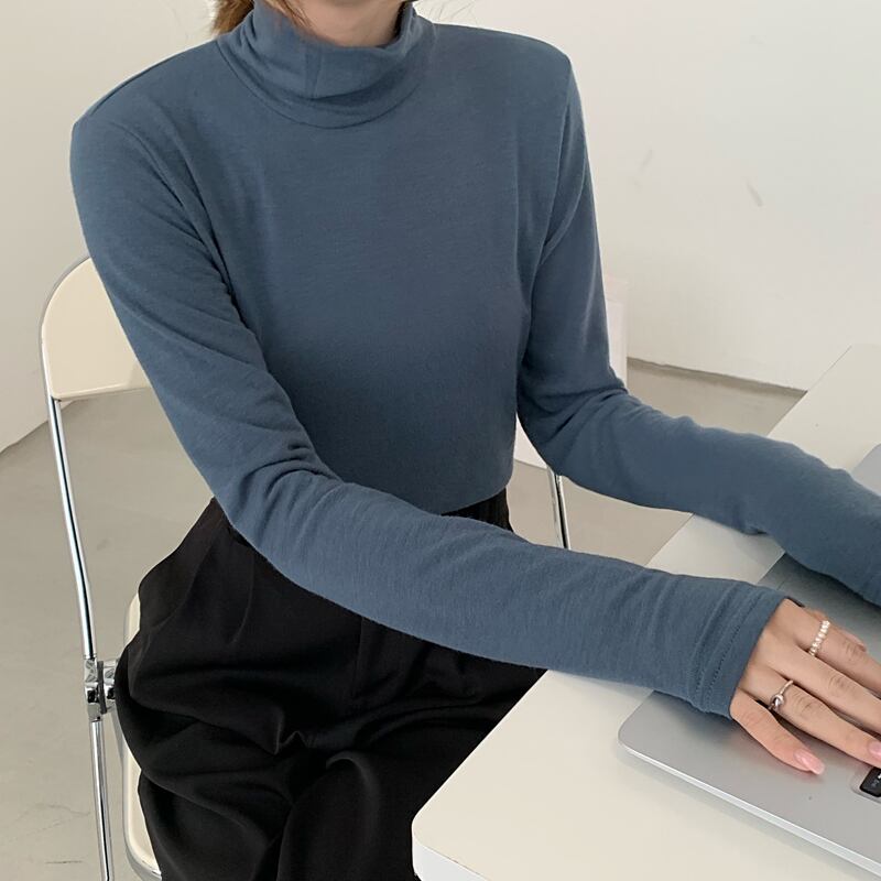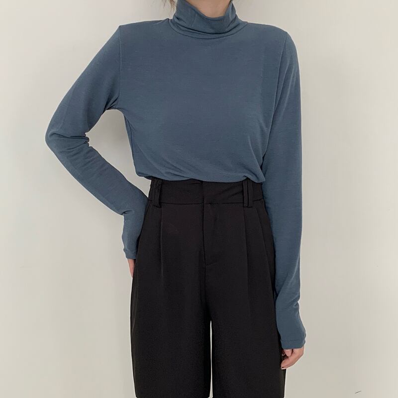 カラースリムシャツ トップス オータムウィンターロング薄手ソリッド 長袖 秋物 冬物 Tシャツ ソリッドカラー kumikum69166599884