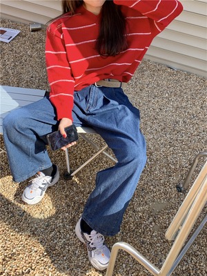 ヴィンテージストライププルオーバー レディースウィンタールーズトップス セーター ロング 冬物 ビンテージ kumikum97082806742