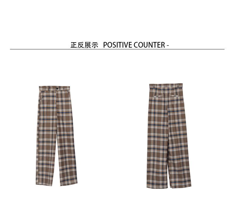 スタンダード格子柄カジュアルパンツ ワイドレッグハイウェストウェストルーズスリムレディースサマー レトロ 夏物 ワイドパンツ kumikum85674904400