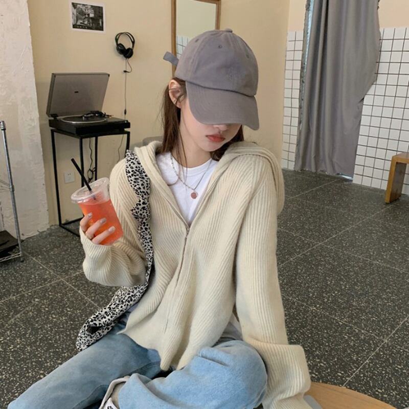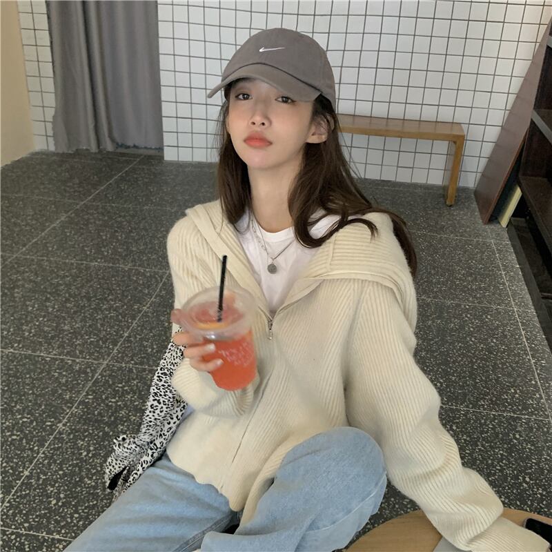 ジッパーセーター カーディガントップス レディースオータムルーズコート ロング 秋物 kumikum73181625257