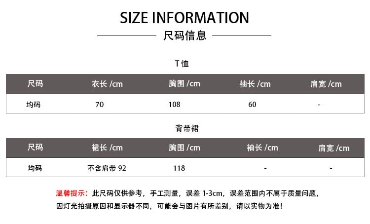 色:白いTシャツ,茶色のtシャツ,ブラックストラップドレス,ブルーストラップスカート