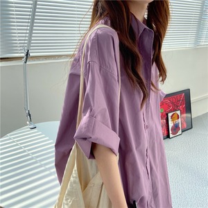 シャツ ジャケット スプリングスタイルスタンダードルーズトップス レトロ 春物 パープル kumikum38793250254