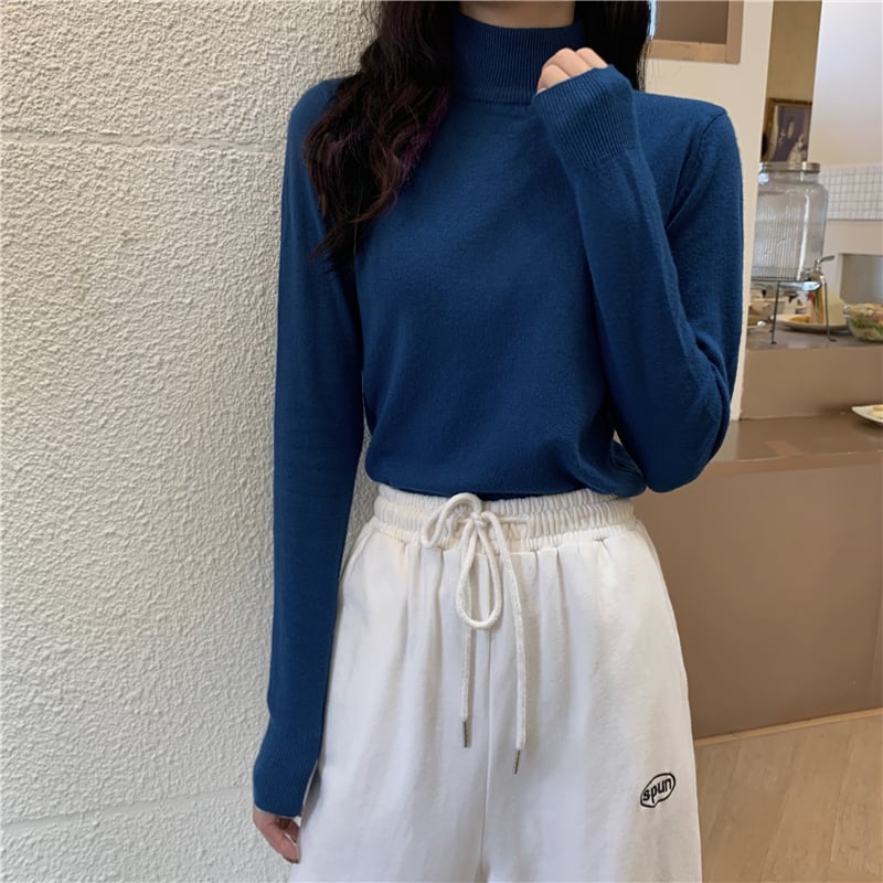 カラースリムニットセーター トップス プルオーバー シャツ ロング ウィンター 冬物 kumikum71895077805