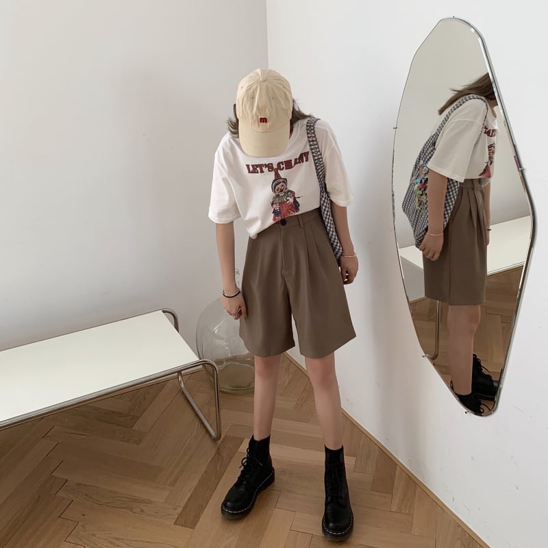 ブラックカジュアルパンツ ショーツ レディースサマーハイウェストウェストルーズ 夏物 ブルマー kumikum98208092888