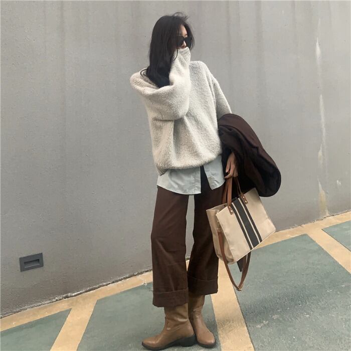 スタイルプルオーバー セーター レディースウィンタールーズラウンドネックトップス ロング 冬物 Oネック kumikum82862524738