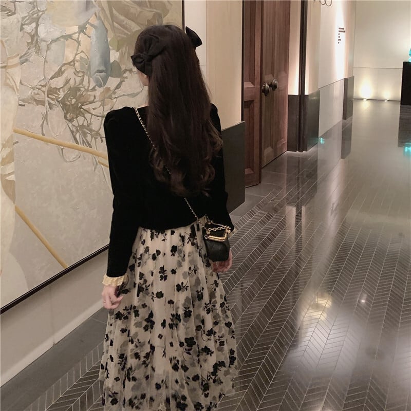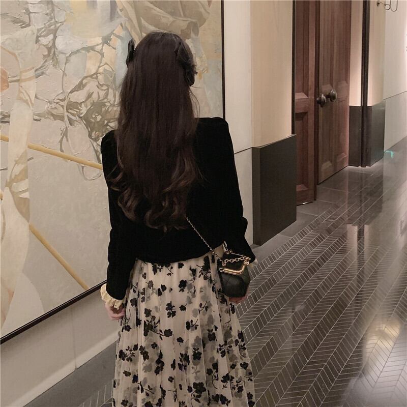 ベルベットトップス メッシュハイウェストスカート オータムセット ロング 秋物 kumikum22045064874