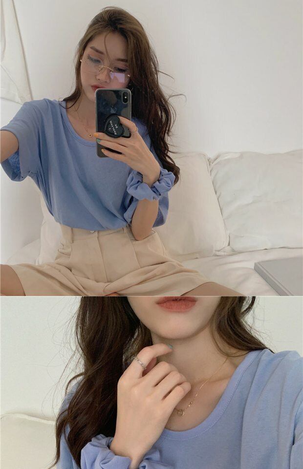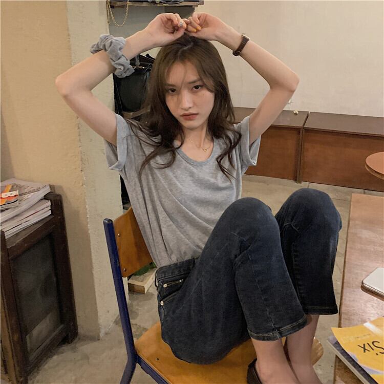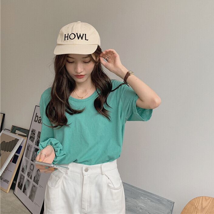 カラーラウンドネックTシャツ シャツ レディースサマー薄手ルーズトップス コットン 夏物 Oネック kumikum94655136758