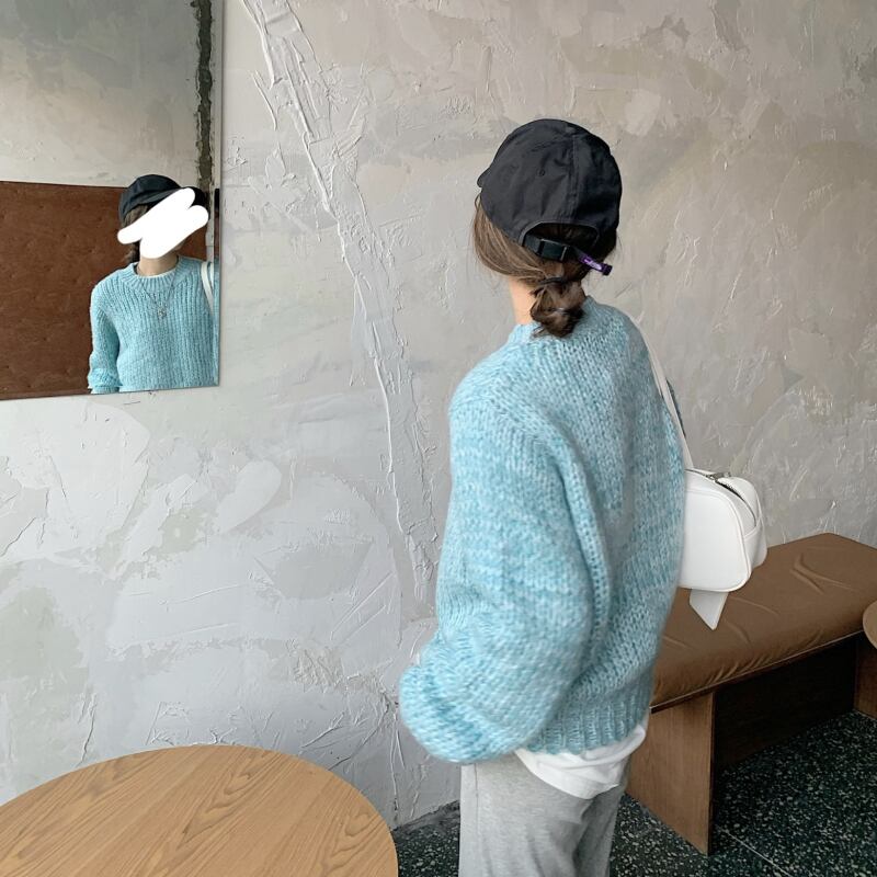 ブルーラウンドネックセーター ブラウス レディースオータムルーズプルオーバー ロング 秋物 Oネック kumikum34220937845