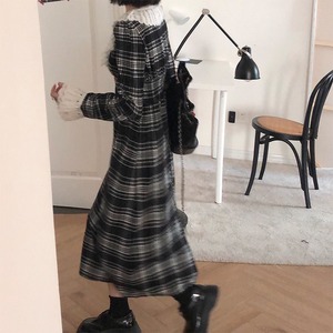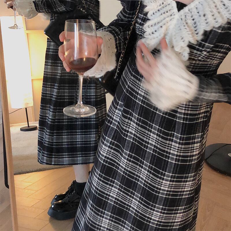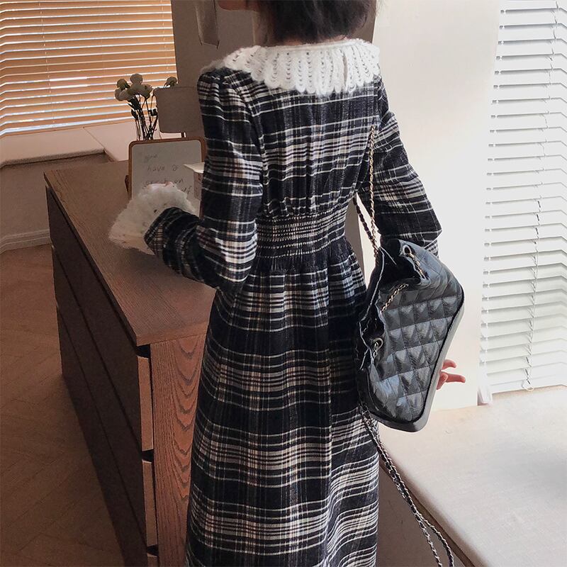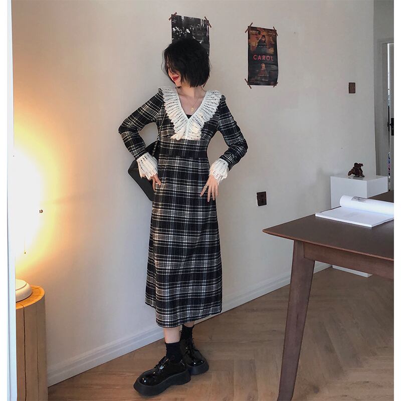 スタンダードレースVネックスカート ウェストドレス ウィンター ロング レトロ 冬物 ステッチ kumikum18623874026