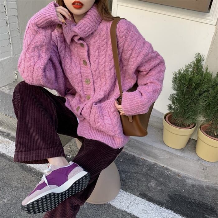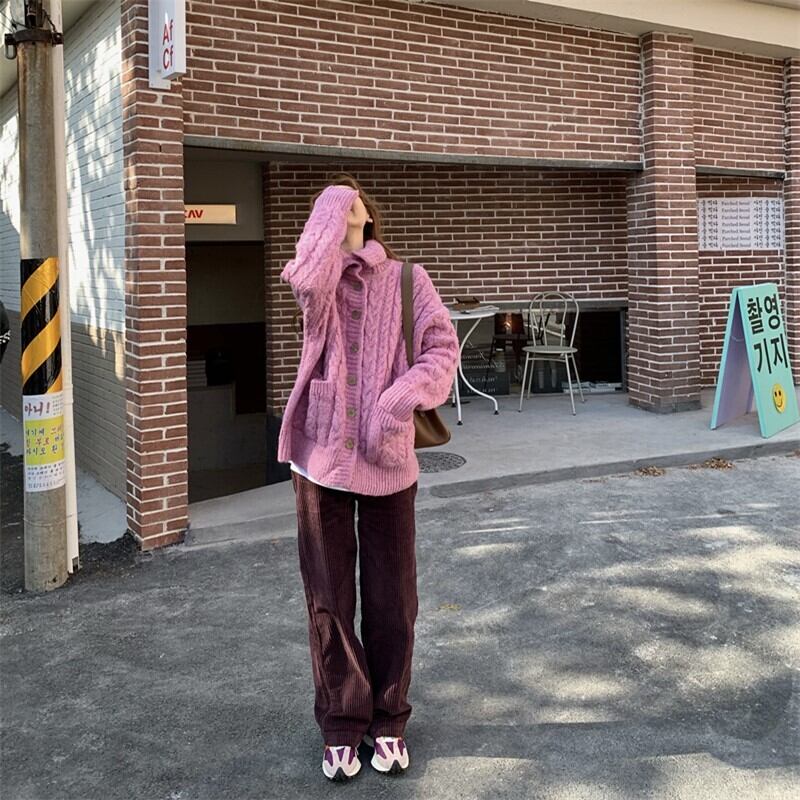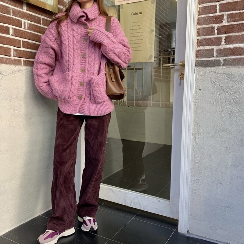 スタイルレディースウィンターカーディガンセーター ジャケット ハイウェストウェストコーデュロイカジュアルパンツ 冬物 kumikum91626014129
