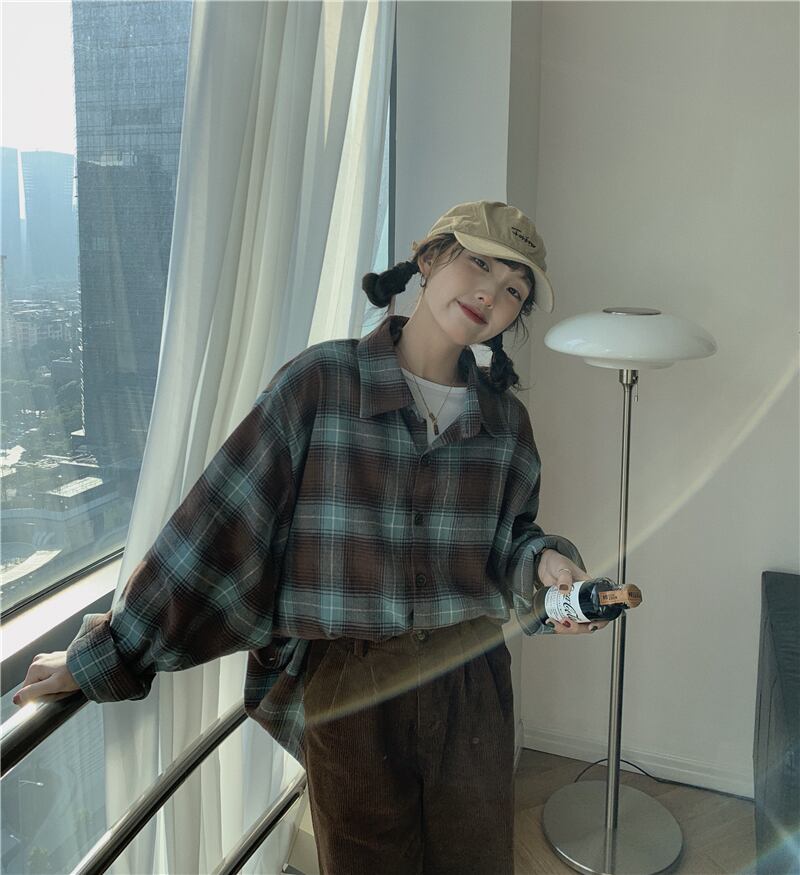 ロングスタンダードカジュアルシャツ トップス スプリングルーズジャケット レッド レトロ 春物 kumikum74544871848