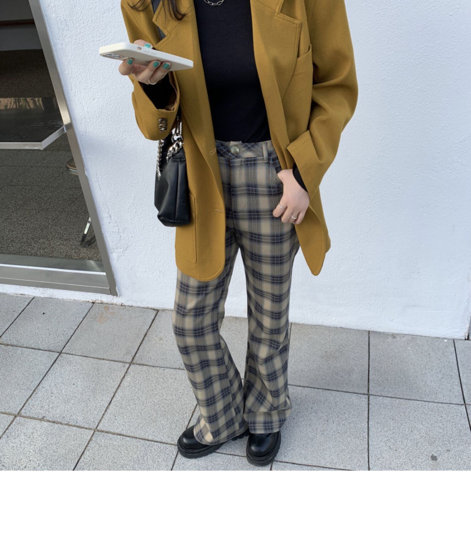 色:チェック柄パンツ