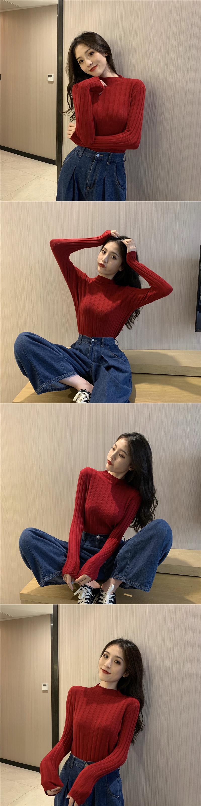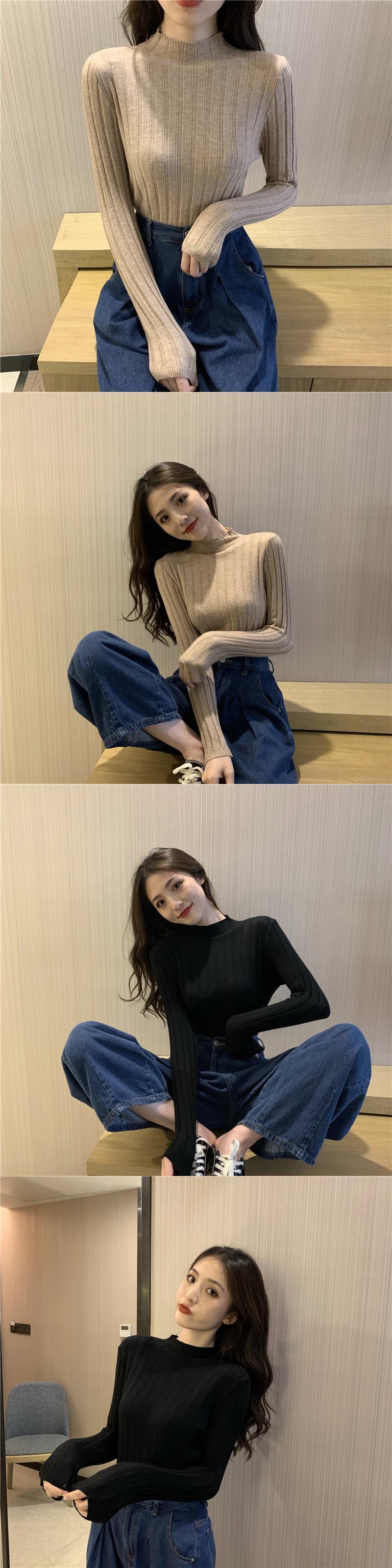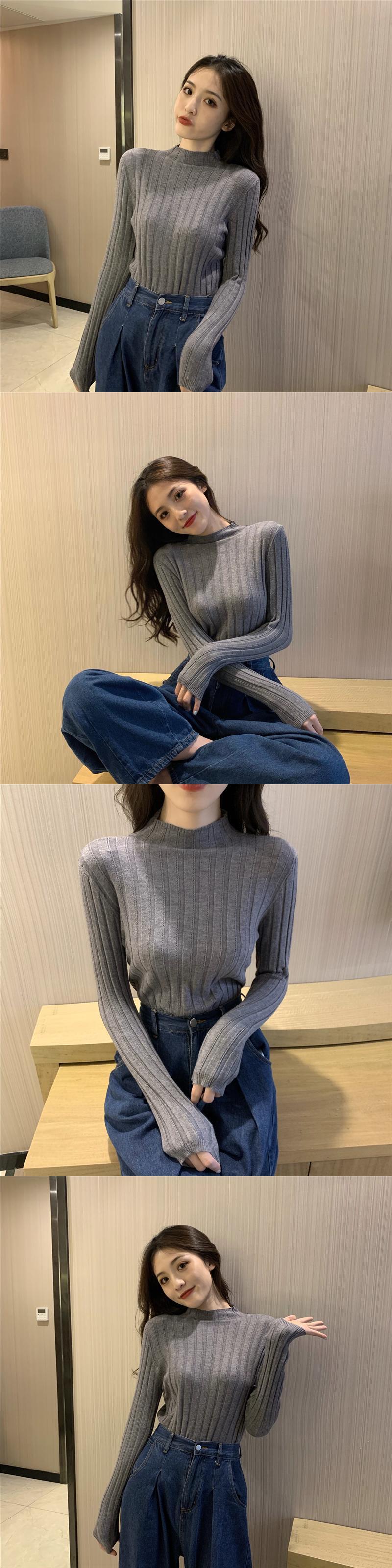セーター シャツ ストライプレディースオータムスリムトップス ロング 秋物 kumikum81509456349
