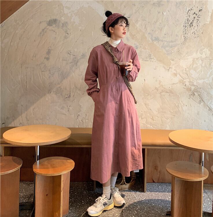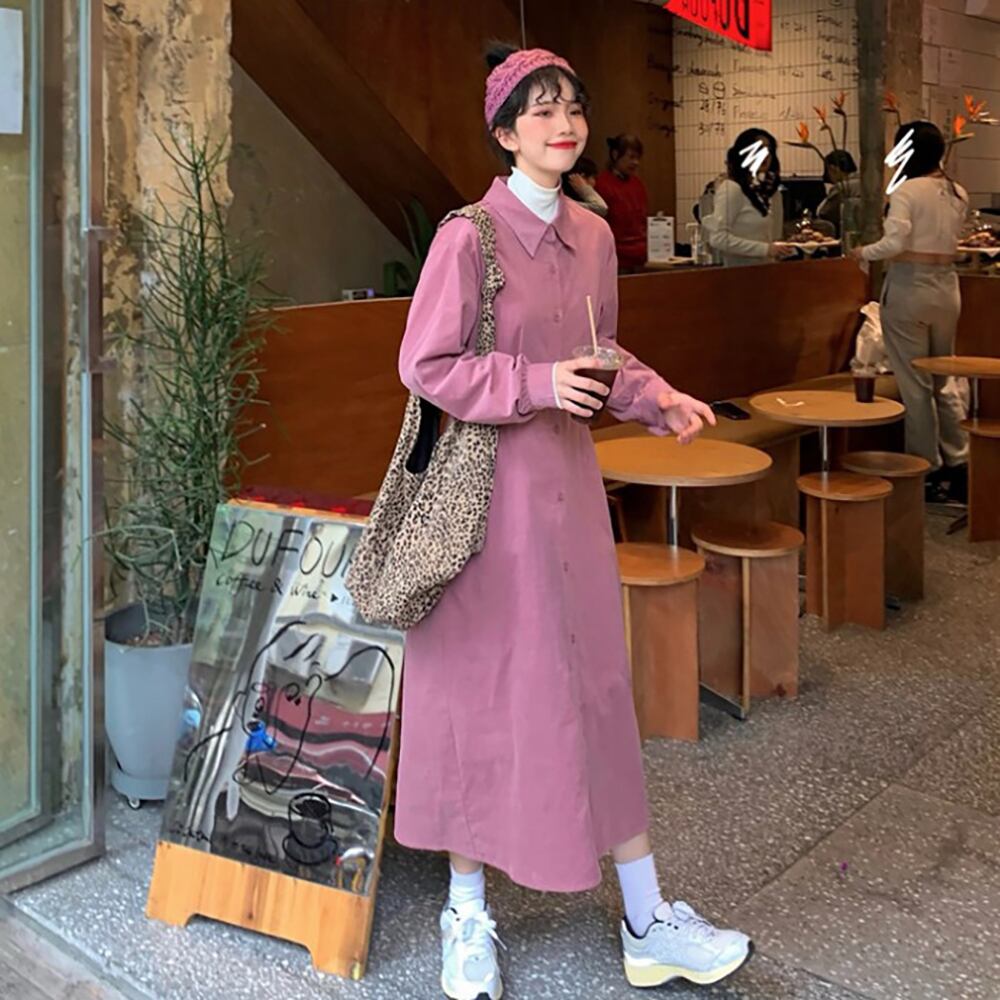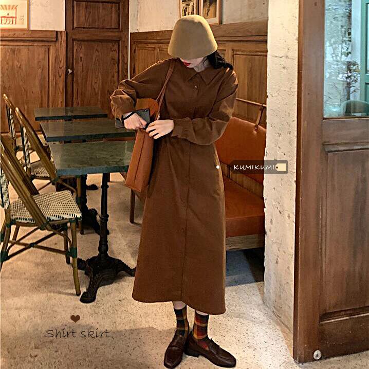 コーデュロイシャツ スカート スプリングウェストスタンダードドレス ロング レトロ 春物 kumikum49204309850