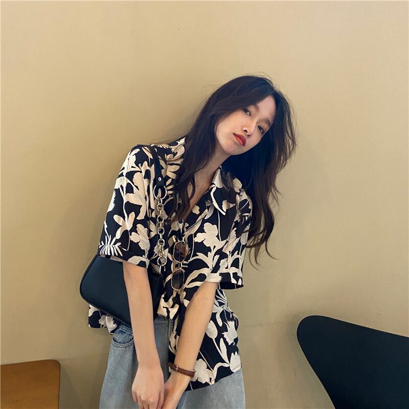 スタンダードルーズシャツ サマーカジュアル レトロ 夏物 フラワーデザイン kumikum59630993512