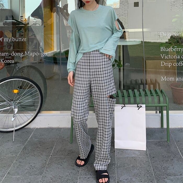 カジュアルパンツ ルーズ薄手ハイウェスト kumikum545436228