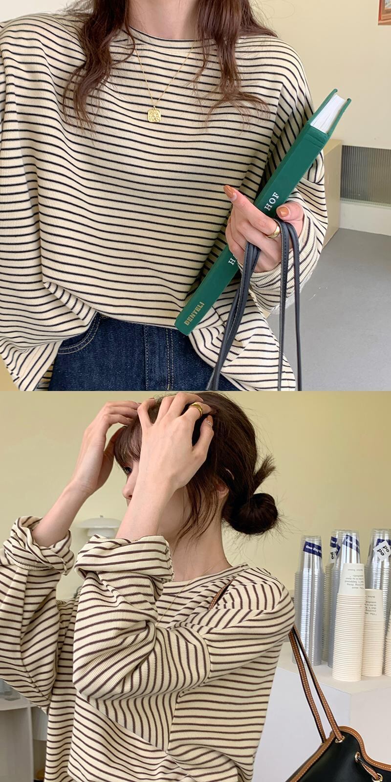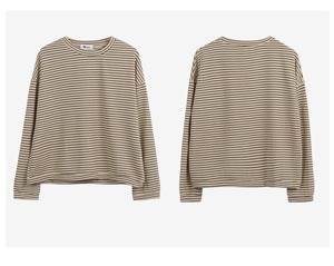スタンダードストライプシャツ スプリングルーズTシャツ トップス ロング レトロ 春物 kumikum55637361166